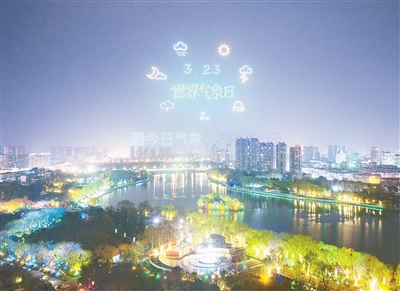 3月21日晚,千机飞“只有漯河”世界气象日专场活动在沙澧河风景区梨园春广场举行。本报记者 杨 光 摄