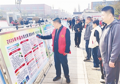 源汇区水利局工作人员向群众宣传“中国水周”相关知识。王 磊 摄