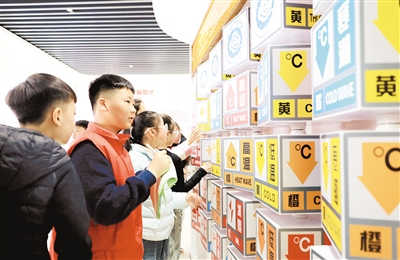 3月23日,小学生在河南省焦作市温县气象科普馆参观。3月23日是世界气象日,多地组织开展气象科普活动,普及气象知识。新华社发