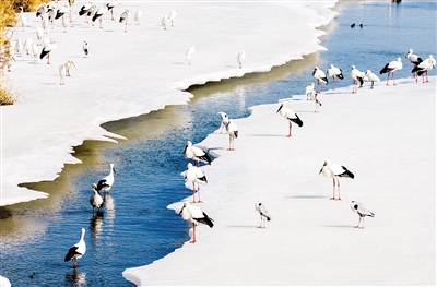 3月23日,在黑龙江省双鸭山市宝清县境内的黑龙江东升省级自然保护区内,一群候鸟在冰面上休息。春日,中国最北省份黑龙江省冰雪渐融,各类北归候鸟陆续飞抵省内各处湿地与水域,为北国春色增添一抹灵动生机。新华社发