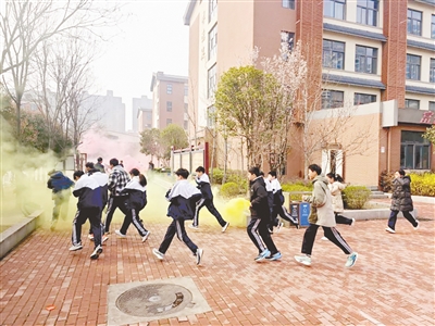 3月18日,郾城中学组织开展消防安全应急疏散演练。王姗姗 摄