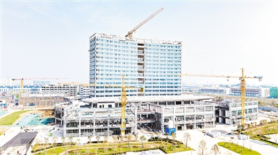 春光正好,市养老产业综合服务园项目建设如火如荼地进行。图为3月20日,工人们加速推进室内外装修及配套设备安装。