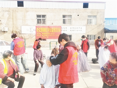3月24日,市城乡一体化示范区黑龙潭镇姚庄村开展免费理发活动,邀请志愿者为60岁以上老人、12岁以下儿童免费理发。