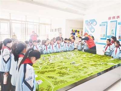 3月22日,源汇区第三实验小学组织四年级的师生代表100余人走进市区三水厂、沙澧连通节制闸、南水北调中心,开展了一场别开生面的研学实践活动。张鲁豫 摄