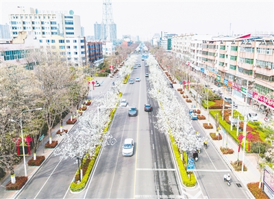 随着气温回升,沙澧大地繁花绽放、绿意盎然。图为3月25日,市区嵩山路中段两侧盛开的梨花。