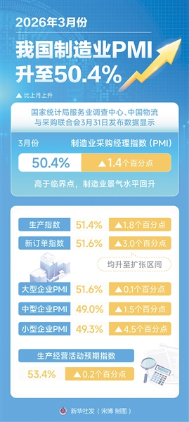 国家统计局服务业调查中心和中国物流与采购联合会3月31日发布数据显示,3月份,制造业采购经理指数(PMI)、非制造业商务活动指数和综合PMI产出指数均重返扩张区间,分别为50.4%、50.1%和50.5%,比上月上升1.4个、0.6个和1.0个百分点,我国经济景气水平回升。