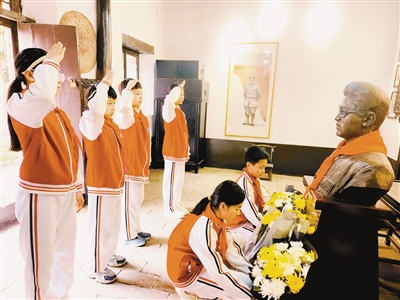 ①3月30日下午,郾城区伊坪小学师生代表前往赵伊坪烈士故居开展“缅怀革命先烈 传承红色基因”主题思政实践活动,让红色基因在沉浸式教育中代代相传。 田凤华 摄