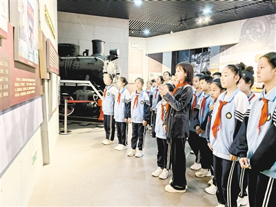 ③3月31日,源汇区外国语小学组织学生代表到市烈士陵园开展祭扫活动。图为学生们参观市革命纪念馆,缅怀英烈。孙旖晗 摄