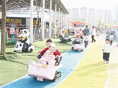 4月4日,龙湖心跳乐园热闹非凡,游人如织。