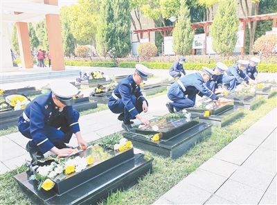4月3日,经济技术开发区消防救援大队队员到市烈士陵园,开展清明祭英烈活动。