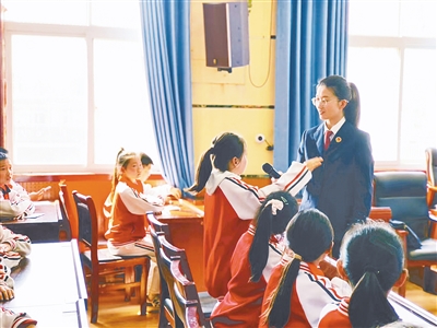 活动现场,赵琼以经典故事《小马过河》为切入点,设置“小马遭遇诈骗”“小马面对欺凌”等情境,用通俗易懂的语言讲解民法典相关知识,拆解骗子常用套路,阐释欺凌行为的危害。随后,她通过提问引发学生们热烈讨论,提醒大家不点击陌生链接、不扫描陌生二维码,引导大家学会辨别欺凌行为、勇敢拒绝欺凌,并告知大家在遭遇侵害时要及时向老师和家长求助,学会用法律武器保护自己。课堂上,学生们踊跃发言,在互动中学习法律知识。