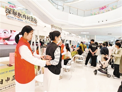 为深化“我为群众办实事”实践活动、弘扬中医药传统文化、普及中医药健康知识,四月六日下午,市二院(市儿童医院)组织中医针灸科十余名科室骨干到万达广场开展义诊活动。 陈 诚 摄