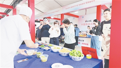 “这不仅是一场展销活动,还是一次文化的体验。”从郑州自驾而来的游客张先生说。他在现场品尝了美食后,通过扫码下单,购买了一套“漯河好礼”礼盒。这种“场景+美食”“食品+文创”的模式,成为我市文商旅融合发展的生动实践。